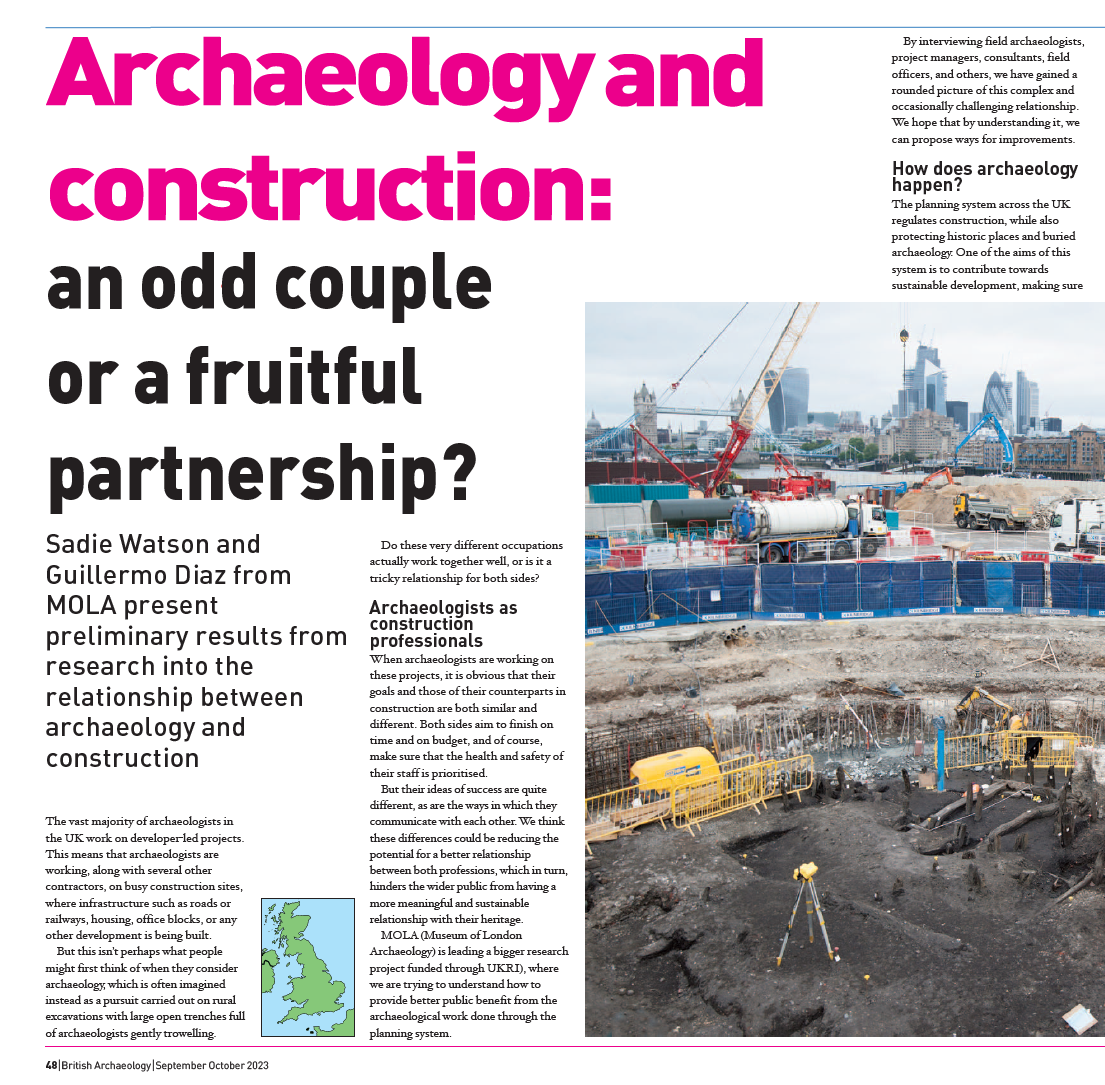 Diaz, Guillermo, and Watson, Sadie, 2023, Archaeology and construction: an odd couple or a fruitful partnership? British Archaeology Sept-Oct 2023, 48-51